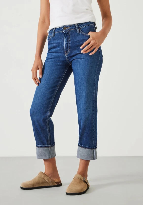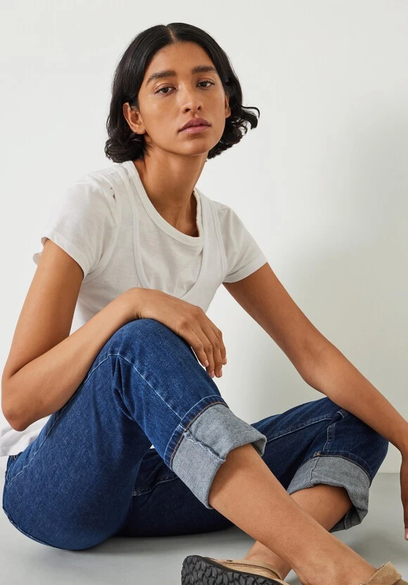 One of the big benefits of cool, late-summer days? Rediscovering our dark denim. Finished with a deep indigo wash, our straight-leg Agnes jeans have adjustable turn-ups at the cuffs – perfect for rolling down over sandals, and up over ankle boots.