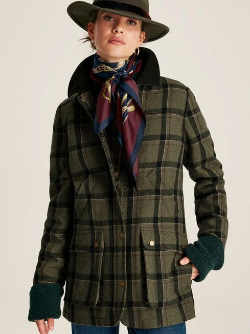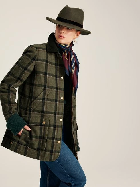 Designed for spending hours roaming the fields of Great Britain, the Berkley is an outdoor style you can count on. The tweed is a nod to our countryside heritage and carries a traditional colour palette of deep greens and browns. The vertical quilted lining filled with wadding will keep you warm when the colder climes hit and its overall relaxed fit gives you room to layer. Attention to detail is never missed and can be seen through the cord collar and trims, back and cuff vents and the hand-drawn printed lining. The practicalities matter, which is why we’ve added classic bellow pockets, as well as slip-in pockets below the chest and an additional one on the inside. To elevate it, the poppers throughout have an antique brass effect and the coat comes with a brass hare pin (packaged separately) which when pinned to the collar will finish the look off perfectly. Wool blend Relaxed fit Vertical quilted lining in a hand-drawn print Cord collar and trims Antique brass effect poppers Back and cuff vents with popper fastenings Bellow pockets with popper fastenings Additional two chest slip-in pockets and an internal pocket Metal hare pin (packaged separately) Length: 76.5cm (based on UK size 12)