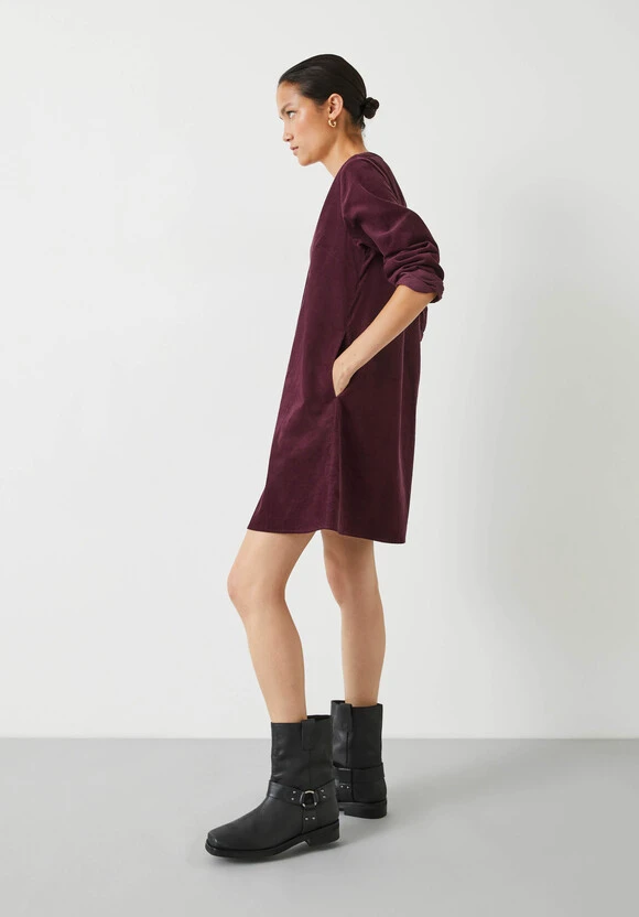 Come winter, we’re craving cosy fabrics. That’s why we’ve used soft babycord to create the 60s-style silhouette of our A-line Emory dress. Pleated at the front for added movement, this minimalist layer comes in two deep autumnal shades for added warmth.