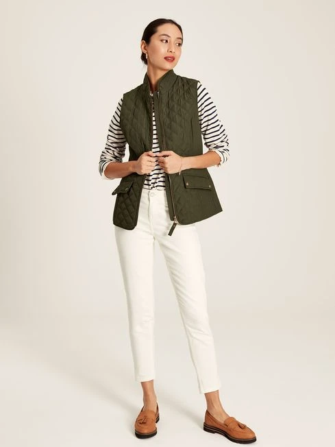 Our Minx gilet is a much-loved outdoor essential, perfectly made for popping into town or strolling through fields with the dog. This all-year-round layering piece has diamond quilting, a zip-through fastening, pockets with exposed metal poppers and an elasticated back channel. For a shape that’s as flattering as it is comfortable there’s fitted side panels down each side too. Woven Diamond quilting Zip fastening Fitted side panels for a flattering look Front flap pockets with metal poppers Elasticated back channel with popper adjusted tabs Joules embroidered hare to the hem