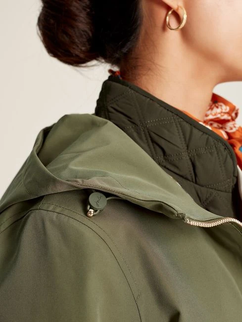 Whether it’s a little drizzle or a great British deluge, the Elmfield coat will keep you dry in all types of rain. For that, you can thank the fully taped seams that stop water from seeping through and the waterproof outer fabric that has been tried and tested. The hood with bungee cord toggles offers extra shelter from the rain and the relaxed fit allows for easy layering underneath. An adjustable waist with internal toggles ensures a fit that is unique to you, the curved hem adds a flattering touch and the two-way zip fastening has a high-shine finish. There are two angled side pockets with popper fastenings (perfect for stashing dog treats and other essentials) and elasticated cuffs for comfort. Have a gander inside and you’ll discover a half-checked lining as a nod to our heritage. It’s finished with a Joules screen print hare to the hem and Joules script logo to the left cuff (as worn). Relaxed fit Waterproof with fully taped seams High-shine two-way zip fastening Adjustable waist with internal toggles Side pockets with popper fastenings Curved hem with Joules hare screen print Hood with bungee cord toggles Half checked lining Elasticated cuffs Length: 98cm (based on UK size 12)