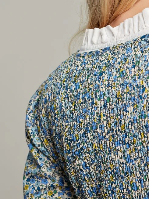 Our Aura dress will make a lovely addition to your wardrobe. It’s a midaxi length, has a tiered skirt, a gathered waistline and is adorned in a hand-drawn floral print. The top half is full of pretty touches such as short puff sleeves, elasticated cuffs with a frilled trim, a flattering V-neck and shirred detailing to the back bodice. This is a versatile dress for now and later. Wear with sandals in spring/ summer or layer under a jumper for an autumn/winter look.