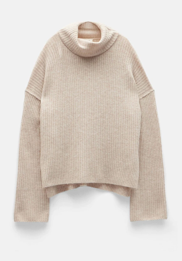 Fighting the colder weather? We’re fully committing with styles like our Kelly ribbed jumper. Made from a weighty wool blend, its oversized silhouette is finished with column-style sleeves that slouch down over your fingers. Roll up the cuffs, or let them lie loose under your winter coat.