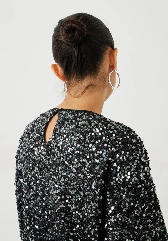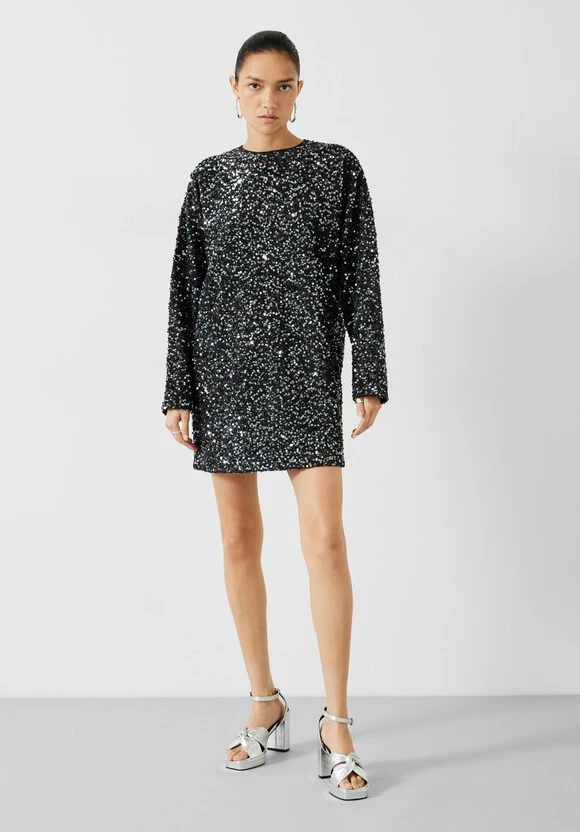 It’s no secret that sequins are a staple of party season. And our Mischa mini dress has a lot of them. Covered in sparkle, its thigh-skimming silhouette stays casual thanks to a relaxed, tee-style cut. Dress it up with heels, or down with chunky low-top trainers.