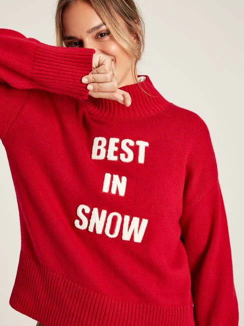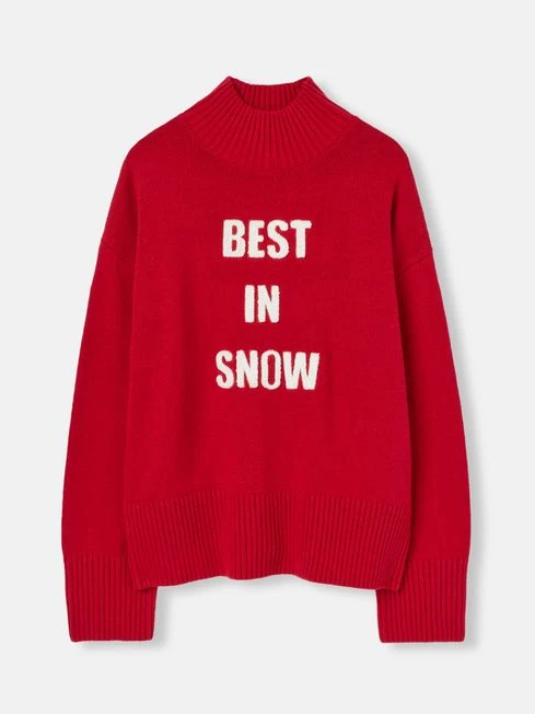 Designed to add a touch of personality to your winter wardrobe, the Belle jumper is a layer you’ll reach for time and time again. It features a tufted ‘Best in Snow’ applique to the front which will bring joy to the day and comes in red which suits the season. It feels as good to wear as it looks with a relaxed fit making room for layers, dropped shoulders and a high neck for snuggling into. If you’re hitting the snowy slopes this winter, this will make a great layer for après ski! Cotton and wool blend Relaxed fit Dropped shoulders ‘Best in Snow’ tufted applique High neck Ribbed hem and cuffs