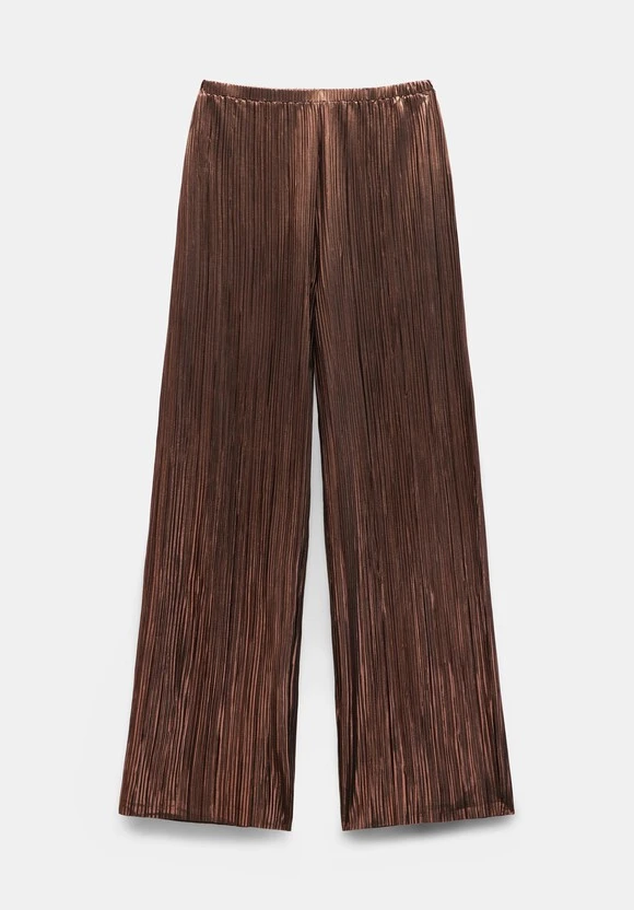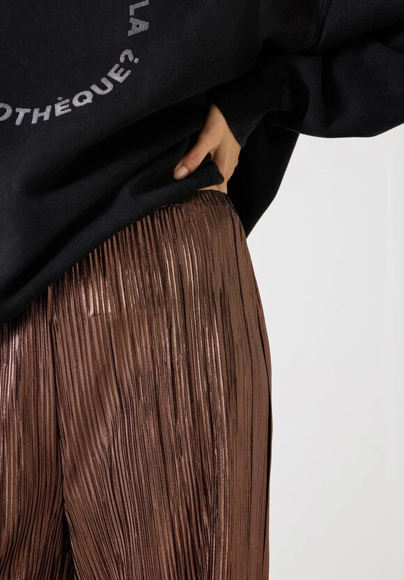 We’re all about keeping our easy looks going after dark. That’s why our Reva trousers are made from an ultra-lightweight pleated fabric to form a loose, relaxed silhouette. Their glossy, gold-toned finish is a great match for contrasting layers – think oversized tailored blazers or slouchy sweatshirts.