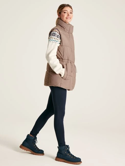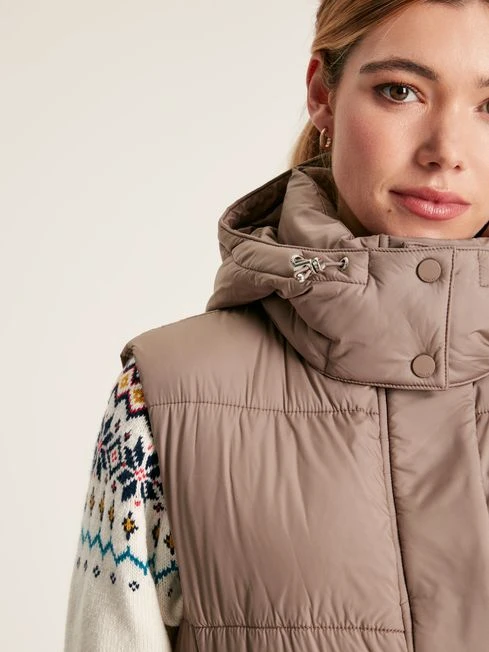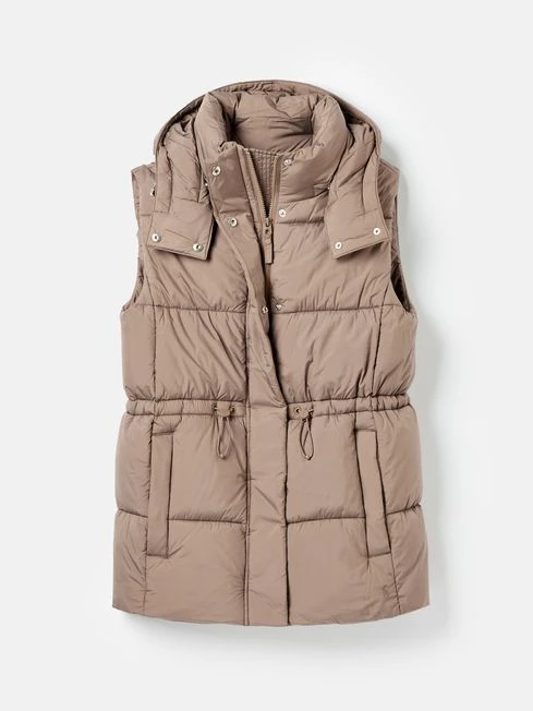 A gilet is a can’t-go-wrong layer for the colder months of the year when there’s a distinctive nip in the air. The Witham showerproof gilet has a contemporary look with large padded and filled baffles, combined with a loveable practicality you’d expect from a gilet. The adjustable waist with bungee toggles allows you to cinch it in for a more flattering fit, while a detachable hood means you can add it or remove it depending on the skies. For a sleek and clean look the two-way zip and popper fastenings are concealed, so too are the poppers on the pockets. It’s finished with a Joules hare embroidered to the hem. Showerproof Large baffles padded and filled with warm wadding Funnel neck Adjustable waist with bungee cord toggles Detachable hood Concealed two-way zip and popper fastening Side pockets with concealed popper fastenings Joules embroidered hare to the hem