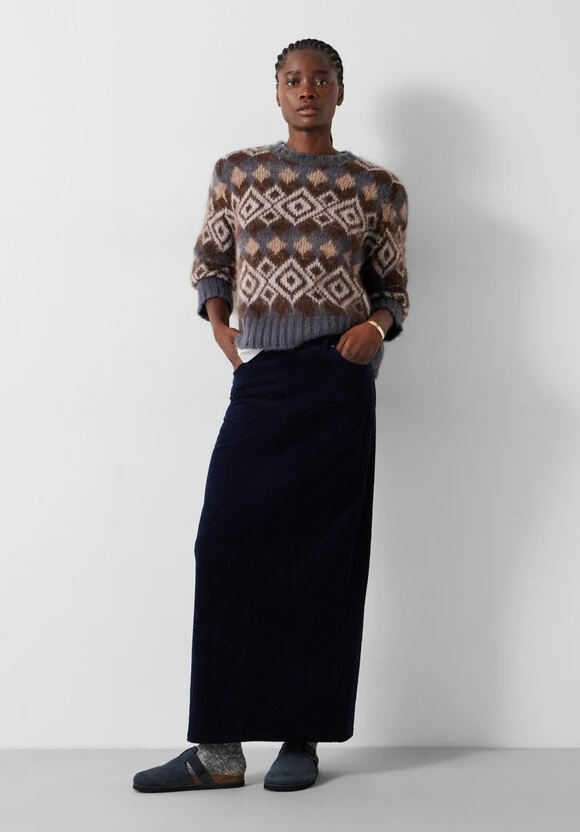 A fuzzier update on classic fairisle. The Tessa jumper is made from a mohair-blend yarn that’s brushed after knitting to give it an ultra-soft, fluffy texture. Consider that colourful pattern a neutral – it’ll work with everything in your winter wardrobe.