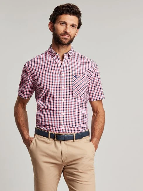 Short sleeve shirts are a summer staple whether it’s for keeping cool (but smart) in the office or wearing unbuttoned over a T-Shirt at the weekend. Our Wilson shirt has a classic fit, is crafted from a lightweight woven fabric, and has a full button-down fastening and a single patch pocket to the chest. It comes in a traditional gingham that will pair perfectly with anything from chinos to jeans.